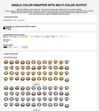 (a .png slicer, a bulk sprite combiner, and a multi output color swapping script)