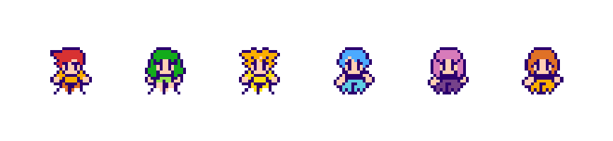 12 Fully animated 16x16 character sprite pack. Top Down 2D Zelda and Final Fantasy inspired heroes.